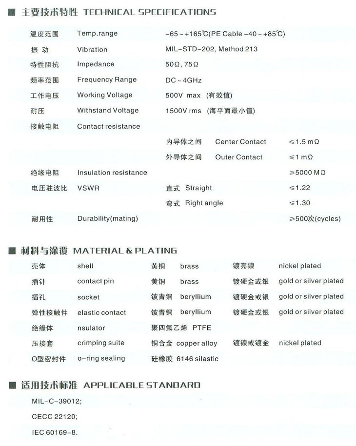 - 1.0/2.3(CC4)系列射頻同軸連接器